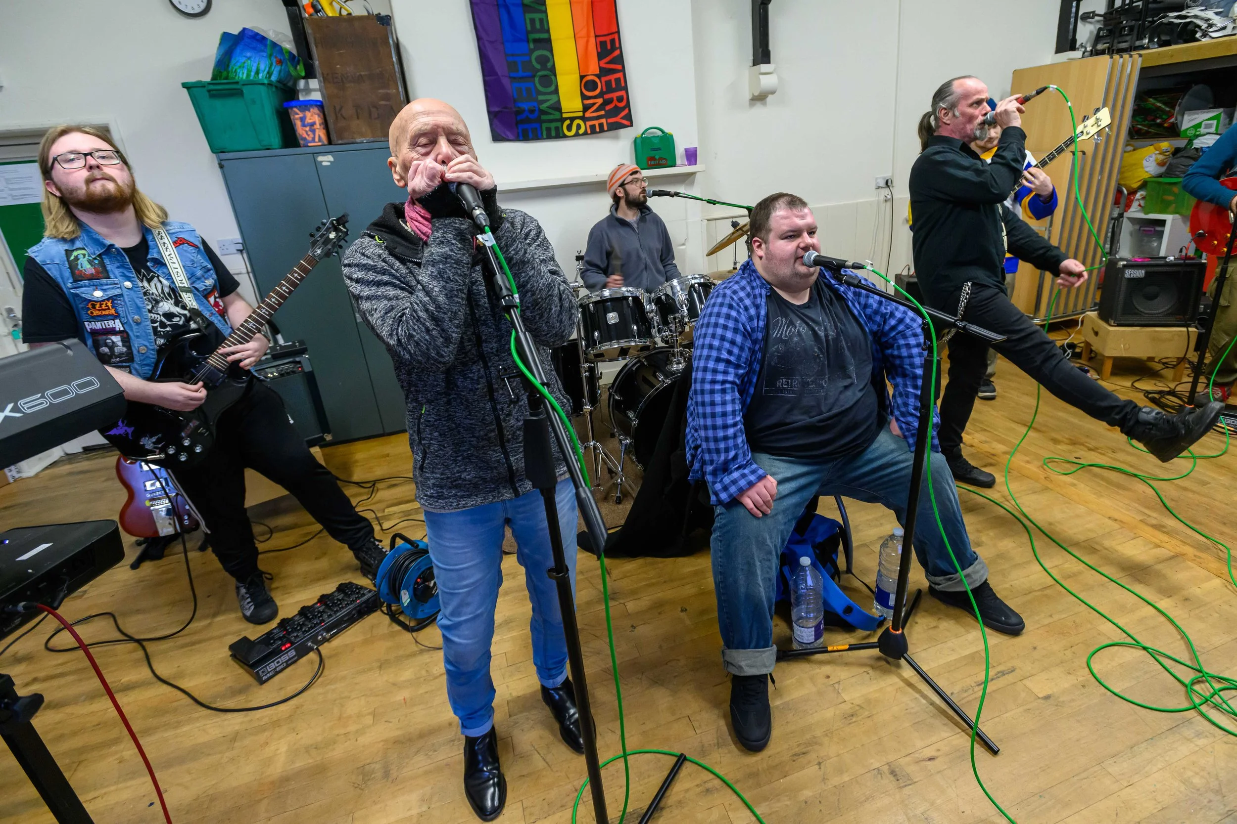 Jack Drum Art’s newest community music group meets every fortnight on Saturday afternoons for a 3-hour session. Inspired by a wide range of rock and pop music from the past 70 years, the band goes by the name of AG/ED. Members collaborate to develop sets for public performance, writing original compositions and arranging music from many genres. In 2025 AG/ED performed at Durham Fringe Festival and B.O.P Fest.