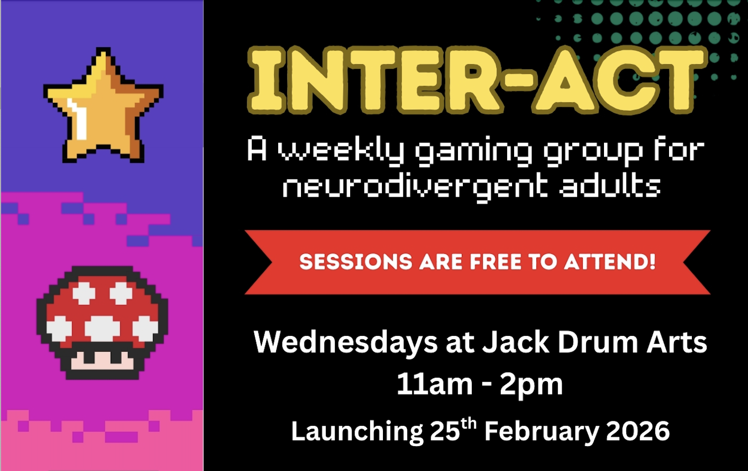 Designed and delivered by enterprising participants from our Man Made group, Inter-Act will provide space for neurodivergent people to make new friends, connect, and play games.